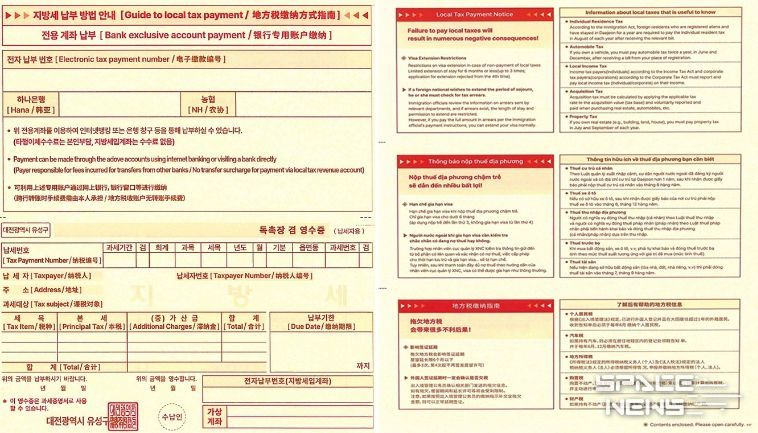 스페이스뉴스 스페이스뉴스 기자 | 대전 유성구는 5월부터 지방세를 체납한 외국인에게 대전시 최초로 영어와 중국어를 병기한 체납고지서를 발송한다.