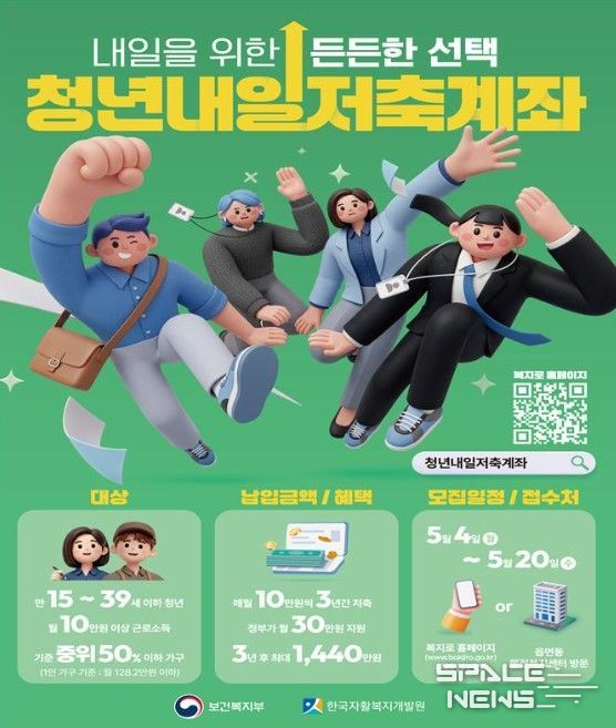스페이스뉴스 스페이스뉴스 기자 | 서귀포시는 일하는 저소득 청년의 자립기반 마련을 지원하기 위해 5월 4일부터 5월 20일까지 ‘청년내일저축계좌’ 신규가입자를 모집한다.