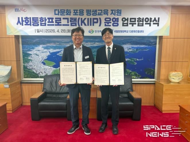 스페이스뉴스 스페이스뉴스 기자 | 창원특례시는 시청 접견실에서 국립창원대학교와 외국인 주민의 안정적인 지역사회 정착 지원을 위한 '사회통합프로그램 운영' 업무협약을 체결했다고 밝혔다.