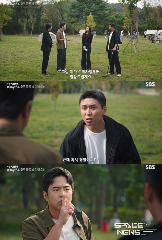 연쇄 아동 실종 사건을 수사하는데 단 4명만이 모인 비밀 수색 현장. 신이랑의 부재가 눈에 띄는 가운데, 비번까지 반납하고 달려온 김순경과 “주 안에서 불가능은 없다”며 전의를 불태우는 마태오, 그리고 평소보다 진지해진 윤봉수의 리드가 눈길을 끈다. 윤봉수는 “사체가 매장된 곳은 유기물 때문에 식물 성장이 다르다”며 다년의 단역생활로 쌓은 전문적 지식을 뽐내는가 하면, 금속 탐지기 앱을 활용해 단추나 지퍼 하나도 놓치지 말 것을 당부한다.