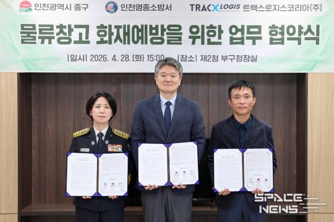 스페이스뉴스 스페이스뉴스 기자 | 인천시 중구는 영종소방서, 트랙스로지스코리아㈜와 ‘물류창고 화재 예방을 위한 업무협약’을 체결했다고 29일 밝혔다.