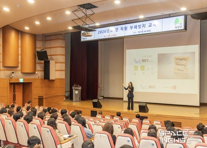 스페이스뉴스 스페이스뉴스 기자 | 인천광역시 계양구가 청렴한 공직문화 조성을 위해 28일 구청 대강당에서 ‘2026년 전 직원 부패방지교육’을 실시했다.