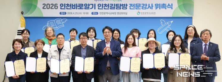 스페이스뉴스 스페이스뉴스 기자 | 인천광역시교육청은 29일 인천바로알기 관계자 30여 명을 대상으로 ‘2026 인천바로알기 인천길탐방 전문강사 위촉식’을 개최했다.