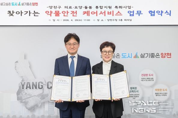 스페이스뉴스 스페이스뉴스 기자 | 양천구는 29일 오전 구청 5층 회의실에서 양천구약사회와 ‘찾아가는 약물안전 케어서비스’ 추진을 위한 업무협약(MOU)을 체결했다고 밝혔다. 이번 협약은 약물관리가 필요한 취약계층을 대상으로 약사가 직접 가정을 방문해 맞춤형 서비스를 제공하는 양천구 통합돌봄 특화사업의 일환이다.