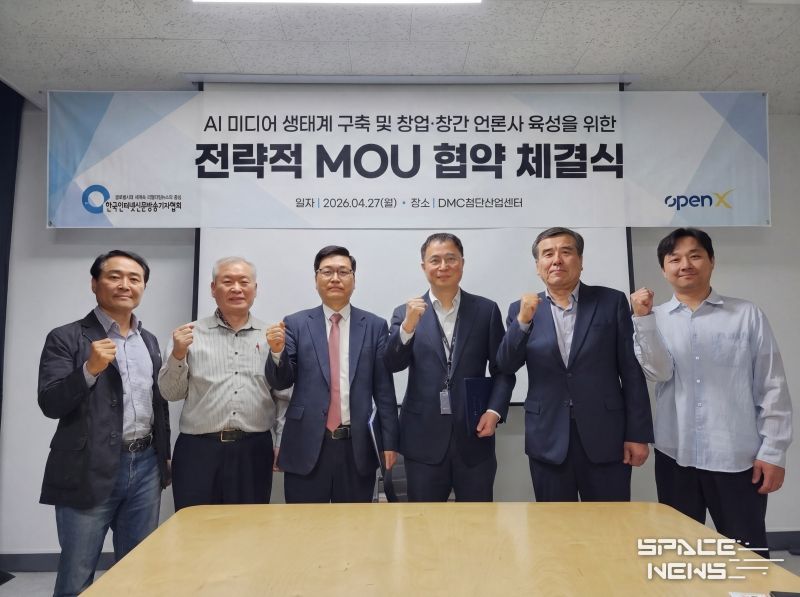 스페이스뉴스 스페이스뉴스 기자 | 한국인터넷신문방송기자협회(회장 전병길, 이하 협회)와 오픈엑스(대표 김미진)는 지난 2026년 4월 27일 서울 상암동 DMC첨단산업센터에서 업무협약(MOU)을 체결하고, 제휴 언론사 육성과 건강한 미디어 생태계 강화를 위해 적극 협력하기로 뜻을 모았다.