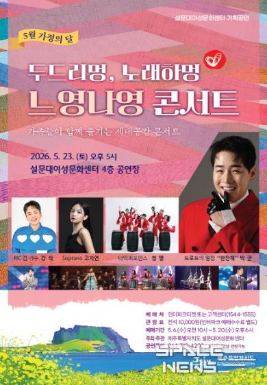 현은정 설문대여성문화센터 소장은 “가정의 달을 맞아 가족이 함께 즐길 수 있는 공연을 마련했다”며 “도민들이 문화예술을 통해 일상에 활력을 얻는 시간이 되길 바란다”고 말했다.