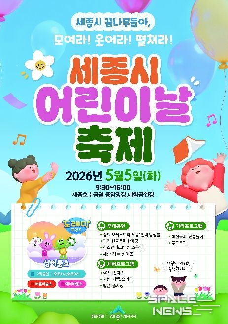 스페이스뉴스 스페이스뉴스 기자 | 세종특별자치시가 오는 5월 5일 어린이날 세종호수공원 일원에서 ‘제104회 세종 어린이날 행사’를 개최한다.