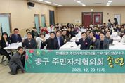 스페이스뉴스 스페이스뉴스 기자 | 인천 중구의회는 지난 29일 율목동 커뮤니티센터에서 열린 '2025년 중구 주민자치협의회 송년회'에 참석했다. 이날 행사에는 이종호 의장, 손은비 운영총무위원장, 윤효화 예산결산특별위원장이 참석해 한 해 동안 지역사회 발전을 위해 헌신한 주민자치회장단과 사무국장 등 각 동 주민자치회 관계자들에게 감사와 격려의 뜻을 전했다. 이종호 의장은 "올 한 해 주민 가까이에서 지역 현안 해결과 주민자치 활성화를 위해 애써주신 모든 분께 깊이 감사드린다"며 "중구의회도 주민자치회가 지역 공동체의 중심 역할을 할 수 있도록 제도적 지원을 아끼지 않겠다"고 밝혔다. 한편, 중구의회는 앞으로도 주민자치협의회와 협력해 주민 중심의 지역 자치 활성화를 위해 노력한다는 계획이다. [뉴스출처 : 인천시중구의회]