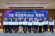 스페이스뉴스 스페이스뉴스 기자 | 국내외 기업 투자 유치를 핵심 과제로 추진 중인 충남도가 이번엔 14개 기업으로부터 5000억 원 이상의 투자를 이끌어내며 충남의 지속 가능한 미래 발전 발판을 다졌다. 김태흠 지사는 26일 도청 대회의실에서 김석필 천안시장 권한대행 등 6개 시군 단체장 또는 부단체장, 이동주 성창오토텍 대표이사 등 14개 기업 대표와 투자협약을 체결했다. 협약에 따르면, 14개 기업은 2029년까지 6개 시군 산업단지 등 50만 64㎡의 부지에 총 5090억 원을 투자해 생산시설을 신·증설하거나 이전한다. 이들 기업이 계획대로 가동할 경우 신규 고용 창출 인원은 526명으로 예상된다. 천안 북부BIT일반산단에는 4개 기업이 생산시설을 신·증설한다. 자동차용 부품업체인 성창오토텍이 2만 3225㎡부지에 542억 원을 투자해 공장을 새롭게 만든다. 또 반도체·PCB 표면 처리 장비 전문업체인 하이쎄미코가 132억 원을 투자해 6311㎡부지에 공장을 신설하며, 산업용 로봇 제조업체 아라는 100억 원을 투자해 1100㎡부지에 생산시설을 확장한다.