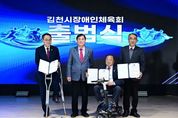 스페이스뉴스 스페이스뉴스 기자 | 김천시장애인체육회는 2월 25일 김천시청 3층 강당에서 ‘스포츠 중심도시 김천에서 장애인과 비장애인 모두가 함께하는 스포츠 환경 조성’을 위한 김천시장애인체육회의 공식 출범식을 가졌다. 이번 행사에는 배낙호 회장을 비롯하여 장애인체육회 임원 등 300여 명의 내빈들이 참석하여 장애인체육회의 힘찬 출범을 알렸다. 행사는 장애인과 비장애인이 조화롭게 어우러지는 김천의 미래를 그리듯 시립교향악단의 연주와 시립합창단의 합창으로 구성된 식전 공연으로 시작됐으며, 여상규 상임부회장의 출범선언, 손태옥 사무국장의 경과보고가 진행됐다. 이어 회기의 릴레이 전달, 도장애인체육회의 인준패 전수, 공로패 수여, 가맹단체 인준서 수여가 진행됐으며, 배낙호 회장의 기념사, 안용우 도장애인체육회 상임부회장 격려사, 나영민 의장, 박선하 도의원, 최한동 김천시체육회장의 축사와 떡케이크 절단 퍼포먼스가 이어졌다. 김천시는 2024년 12월 2일 장애인체육회 설립추진계획을 수립하고 12월 11일 설립준비위원회 구성, 수차례의 회의를 거치고 규약 및 제규정의 제정, 인력채용 및 사무실 인프라 구축