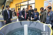 스페이스뉴스 스페이스뉴스 기자 | 강원특별자치도는 강원형 K-연어 생태계 조성의 첫 단계로 2월 26일(목) 10시 10분, 도 내수면자원센터에서‘K-어린연어생산센터 준공식’을 개최했다. 이날 행사에는 김진태 도지사, 해수부, 관련 단체, 도의원 등 100여 명이 참석하며, K-연어산업 비전과 본격 가동계획을 발표했다. K-어린연어생산센터는 총사업비 60억 원(국비 30억 원, 도비 30억 원)이 투입된 사업으로, 해양수산부 주관‘친환경양식어업육성사업’공모에 선정돼 건립됐다. 센터는 연면적 1,599㎡, 지상 2층 규모로 순환여과시스템 7개 모듈 사육조 30개, 부화실, 실험실, 분석실 등을 갖추고 있으며, 연간 5g급 연어 종자 200만 마리 생산이 가능하다. 도는 센터에서 생산한 건강한 연어 종자를 도내 내수면 양식어가에 공급하고 양식어가는 이를 100g급 스몰트로 성장시킨 뒤, 해수양식 산업단지에서 5kg급 성어로 키워 최종 출하하는 단계별 생산체계를 구축할 계획이다. 도는 앞서, 국내 지방자치단체 최초로 연구용 발안란을 도입, 담수에서 부화율 97% 이상을 달성하고 2023년 어