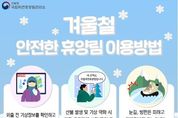 스페이스뉴스 기자 | ■ 겨울철 안전한 휴양림 이용방법 · 외출 전 기상정보를 확인하고 기온변화에 대비한 옷차림하기 · 산불 발생 및 기상 악화 시 해당 휴양림에 사전 문의 후 방문 자제하기 · 눈길, 빙판은 피하고 미끄럼방지 기능이 있는 굽 낮은 신발 신기 · 계단이나 목교 이용 시 난간 잡기, 처마 밑 고드름 조심하기 · 텐트 내 난방기구 사용 시 일산화탄소 경보기를 설치하고, 환기구 확보하기 · 지정된 장소에서 허용된 화구만을 사용하며, 불씨 꺼짐 확인 필수 국립자연휴양림, 겨울에도 안전하고 편안하게 이용하세요! [뉴스출처 : 산림청]
