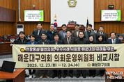 스페이스뉴스 스페이스뉴스 기자 | 해운대구의회 의회운영위원회는 지난 12월 23일부터 24일까지 1박 2일간의 일정으로 경주시 일원을 방문해 선진 의회 시설을 비교·분석하고 의정 역량 강화를 위한 벤치마킹을 실시했다. 이번 시찰에는 김상수 의회운영위원장과 해운대구의회 의장을 포함한 의원 10명, 의회사무국 직원 4명 등 총 14명이 참여했다. 시찰단은 24일 오전 경주시의회를 공식 방문하여 약 3년 전 전면 리모델링을 통해 현대화된 청사 시설을 중점적으로 둘러보았다. 시찰단은 특히 본회의장과 각 상임위원회 회의실이 최신식 설비로 갖춰진 점과, 각 상임위원장실이 별도로 마련되어 있고 넓고 쾌적한 의원 사무실이 조성되어 있는 등 의정 활동을 지원하는 인프라가 매우 우수하다는 점에 주목했다. 현장을 둘러본 의원들은" 경주시의회의 경우 상임위원장실과 의원 연구 공간이체계적으로 분리·배치되어 있고, 회의실 시설 또한 현대적으로 개선되어 있어 의정 활동의 효율성을 높이는 데 크게 기여하고 있다"고 평가했다. 또한, 직원들의 사무 공간이 업무 집중도를 높일 수 있도록 효율적으로 배치된 점과 모든 직