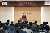 스페이스뉴스 스페이스뉴스 기자 | 함안군은 지난 3일 군청 3층 대회의실에서 조근제 함안군수 주재로 11월 정례조회를 개최했다고 밝혔다. 이날 조회에서는 군민 으뜸상, 우수기업인상, 모범근로자상, 장사업무 유공, 감염병 예방 유공, 화랑훈련 유공, 친절공무원상 등 각 분야에서 헌신한 직원과 군민에 대한 시상이 진행됐다. 조 군수는 “지역 발전을 위해 봉사와 헌신을 아끼지 않은 수상자 여러분께 감사드린다”며 “앞으로도 군민이 체감할 수 있는 군정을 위해 최선을 다해달라”고 축하와 격려의 뜻을 전했다. 또한 지난주 열린 경상남도생활대축전과 함안애복지박람회의 성공적 개최에 기여한 관련 부서와 단체에도 감사를 전하며, “두 행사가 군민의 참여와 협력 속에 잘 마무리됐다”고 말했다. 또한 가을철은 건조한 날씨와 영농활동에 의해 산불 위험이 높아지는 시기로 산불예방에 총력을 기울여 달라고 당부했다. 최근 이상기후로 고온현상과 건조 일수가 늘어나면서 산불 발생이 연중화·대형화되는 추세임을 지적하고 “우리 군은 11월부터 이듬해 5월까지를 산불예방 집중기간으로 정해 운영하고 있다. 산불방지대책본부를