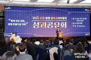 스페이스뉴스 스페이스뉴스 기자 | 충청북도교육청은 15일 14시, 엔포드 호텔에서 2025. 공감‧동행 충북교육박람회 성과공유회를 개최했다. 행사에는 도교육청 및 직속기관, 교육지원청, 각급 학교와 유관기관 관계자, 부스 및 프로그램 운영 담당자, 자원봉사자 등 총 300여 명이 참석했다. 성과공유회는 지난 10월 22일(수)부터 26일(일)까지 5일간 교육문화원과 생명누리공원에서 열린 충북교육박람회의 주요 성과와 우수 사례를 공유하고 향후 발전 방향을 모색하기 위해 마련됐다. 특히, 박람회가 성공적으로 운영될 수 있도록 기획‧운영‧자원봉사 등 다양한 현장에서 헌신한 참여자들의 노고를 함께 돌아보고 감사의 마음을 나누는 자리였다. 성과 공유회는 '함께 만든 변화, 함께 여는 미래'를 주제로 축하공연, 1부 성찰과 공유, 2부 미래 설계 순으로 진행됐다. 축하공연에서는 '몸활동 꿈끼페스티벌 경연 한마당'에서 우수한 성과를 거둔 모충초등학교 9명 학생의 댄스 공연과 내곡초등학교 21명 학생의 합창 공연이 펼쳐졌다. 1부에서는 ▲충북교육박람회 영상 다시보기 ▲준비부터 운영까지 전