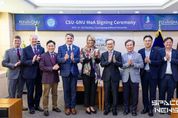 스페이스뉴스 스페이스뉴스 기자 | 경상국립대학교와 미국 콜럼버스주립대학교(CSU, Columbus State University)는 10월 28일 오전 가좌캠퍼스 대학본부 접견실에서 학술·학생 교류에 관한 협정을 체결했다. 협정 체결식에는 경상국립대학교 권진회 총장, 이병현 연구부총장, 오재신 국제처장, 김경수 국제협력부처장, 황정숙 국제협력과장과 CSU 스튜어트 레이필드(Dr. Stuart Rayfield) 총장, 패트릭 도나호(Mr. Patrick Donahoe) 최고운영책임자, 에릭 스피어스(Dr. Eric Spears) 국제협력처장, 이대우(Dr. Daewoo Lee) 정책·정의·공공안전학부 부교수, 데이비드 루이스(David Lewis) 머스코기 카운티 교육청 교육감 등 10명이 참석했다. 이번 협정은 6월 초 CSU 총장 일행 방문 당시 체결한 4자 간 공동 업무협약(진주시 주관 CSU, 진주시, K-기업가정신재단, 경상국립대학교)을 실질적 학술·학생 교류로 확대하여 양 대학 간의 협력 관계를 한층 공고히 하는 시발점이다. 양 기관은 이번 협정을 통해 ▲학술·학생 교류 ▲교직원 교류 ▲공동연구 ▲각종