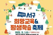 스페이스뉴스 스페이스뉴스 기자 | 부산 서구는 오는 11월 1일 송도오션파크에서 서부교육지원청과 공동으로 '2025년 서구 희망교육 & 평생학습 축제'를 개최한다. 이번 축제는 ‘아이부터 어른까지, 함께 배우고 나누는 즐거운 하루’를 주제로 오전 11시부터 오후 4시까지 다채로운 프로그램이 펼쳐질 예정이다. 대신여자중학교의 신나는 밴드 공연을 시작으로, 관내 7개 학교, 10개 학생 동아리, 12개 평생학습 동아리가 참여해 열띤 무대를 선보인다. 또한 38개의 특색 있는 체험부스, 온가족 플리마켓, 희망교육 & 평생학습 작품 전시회 등 풍성한 볼거리와 즐길거리로 가득할 예정이다. 특히 오는 11월 22일 개관 예정인 서구아미드림도서관 홍보‧체험부스도 운영되어 구민들이 서구의 첫 구립도서관을 미리 만나볼 수 있다. 공한수 서구청장은 “희망교육과 평생학습이 어우러지는 이번 축제를 통해 지역 주민들이 함께 배우고 소통하며 성장하는 계기가 되길 바란다”고 말했다. [뉴스출처 : 부산시서구]