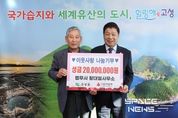 스페이스뉴스 스페이스뉴스 기자 | 고성군은 법무사 황대열 사무소는 10월 28일 고성군청을 방문하여 어려운 이웃을 위해 성금 2,000만 원을 전달했다고 밝혔다. 이번 성금 기탁은 황대열 법무사가 2020년부터 매년 진행해 온 이웃사랑 나눔기부의 일환으로 2025년까지 기탁을 합쳐 총 8,000만 원의 성금을 지역사회에 전하고 있다. 황대열 법무사는 “고성군민의 따뜻한 사랑으로 도·군의원을 세 차례(기초의원 2회, 광역의원 1회) 역임할 수 있었던 것 같다”라며, “그동안 받은 사랑에 보답하고 싶어 매년 지역사회를 위한 나눔을 실천하고 있다. 도움이 필요한 이웃들에게 희망을 전할 수 있어 보람을 느낀다. 앞으로도 나눔 활동을 지속하겠다”라고 말했다. 이상근 고성군수는 “황대열 법무사님의 꾸준한 이웃사랑 나눔 실천에 진심으로 감사드린다”라며, “전달해 주신 성금은 관내 어려운 이웃들에게 소중하게 전달될 것이며, 군에서도 더 많은 이웃이 희망을 가질 수 있도록 최선을 다하겠다”라고 전했다. 한편, 이날 기탁된 성금은 사회복지공동모금회를 통해 고성군 내 저소득층 등 실질적으로 도움이 필요한