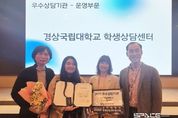 스페이스뉴스 스페이스뉴스 기자 | 경상국립대학교(GNU·총장 권진회) 학생상담센터(센터장 김장회 교육학과 교수)가 전국대학교학생상담센터협의회(전상협)가 주관한 ‘2025년 우수상담기관’에 선정됐다. 이번 선정은 경상국립대학교 학생상담센터가 심리·진로·학습을 아우르는 통합 학생상담 체계를 구축하고, 예방·개입·연계·환류에 이르는 전 과정을 체계적으로 운영하여 재학생의 학교생활을 지원한 노력을 높게 평가한 결과이다. 전국 300여 개 대학의 학생상담센터가 회원으로 등록하여 활동하는 전상협은 매년 12월 개최하는 연차학술대회에서 최근 4년간 가장 모범적으로 운영한 상담센터를 선발하여 우수상담기관으로 인정하고 시상한다. 경상국립대학교 학생상담센터는 2016년 개소 이후 상담 인력 확충, 시스템 고도화, 프로그램 다양화 등 대학 생활 전 주기를 고려한 통합상담 서비스를 제공해 왔다. 특히, 신입생 마음건강 전수조사, 학사경고자 상담, 지도교수 연계 상담, 프렌카운슬러 양성, 찾아가는 상담 등 학생 요구에 기반한 다층적 지원 체계를 마련함으로써 재학생들의 학교 적응과 심리·정서적 안정에 실질적인 도움을 주었다는 평가를 받