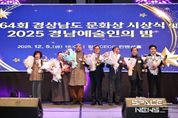 스페이스뉴스 스페이스뉴스 기자 | 경상남도는 5일 창원컨벤션센터에서 열린 ‘제64회 경상남도 문화상 시상식 및 경남예술인의 밤’에서 “오늘 수상자 한 분 한 분은 평생을 한 분야에서 고집스럽게 열정을 갖고 노력해 오신 훌륭한 예술인”이라며 축하의 뜻을 전했다. 이어 “경남의 문화예술인분들 덕분에 올 한해 도민들이 예술을 통해 생활 속 활력을 찾고 아름다움과 행복을 느낄 수 있었다”라며 감사 인사를 덧붙였다. 1962년 제정돼 64년째 이어지고 있는 ‘경상남도 문화상’은 지역 문화예술 발전에 기여한 인물을 선정하는 도내 최고 권위의 상으로, 지금까지 총 380명의 수상자를 배출하며 지역 문화예술사의 굵직한 발자취를 남겨왔다. 올해는 총 7개 부문에서 문화예술계의 오랜 헌신과 성취를 보여준 인물이 수상자로 선정됐다. ❶(학술․교육 부문) 故 김주석 화백, ❷(문학 부문) 김미숙 시인, ❸(조형예술 부문) 김진량 통도요 대표, ❹(공연예술 부문) 전민규 큰들문화예술센터 예술감독, ❺(문화․언론 부문) 리영달 치과의사, ❻(체육 부문) 이수소 경남체육발전협의회 회장, ❼(청년 부문) 최성진 따가다가 아트컴퍼니 대표 &