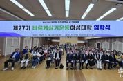 스페이스뉴스 스페이스뉴스 기자 | 바르게살기운동 인천 서구협의회는 9월 27일 서구청 대회의실에서 ‘제27기 바르게살기운동 서구여성대학 입학식’을 개최했다. 이날 행사에는 송승환 서구의회 의장을 비롯해 바르게살기 운동 군‧구협의회 회장, 서구협의회 임원 및 회원, 그리고 입학생 180여 명이 참석해 성황을 이뤘다. 제27기 여성대학은 인천 서구 관내 주부들을 대상으로 11월 20일 수료식까지 매주 목요일 가좌동 나은병원에서 진행되며, 여성들의 역량 강화와 지역사회 발전을 위한 배움의 장으로 운영된다. 여성대학은 바르게살기운동의 3대 이념인 ‘진실, 질서, 화합’을 교육이념으로 삼고, 다양한 강의와 프로그램을 통해 학생들이 자신감을 키우고, 서로를 격려하며 새로운 시각으로 세상을 바라볼 수 있도록 돕는다. 바르게살기운동 인천서구협의회는 “지역사회에 관심을 가지고 봉사에도 적극 참여하며, 행복한 가정과 더불어 잘사는 서구 발전에도 큰 힘이 되어 주시기를 기대한다”라며 “입학생 모두가 건강하고 즐겁게 배우는 시간이 되기를 바란다”라고 전했다. [뉴스출처 : 인천시서구]