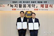 스페이스뉴스 스페이스뉴스 기자 | 인천 동구는 지난 25일 동원로엑스㈜(인천㈜ 대표이사 최안석)와‘녹지활용계약’을 체결했다고 밝혔다. 인천 최초로 진행된 이번 계약은 민간기업이 소유한 사유지를 주민에게 열린 녹지로 제공하는 새로운 방식의 민관 협력 모델이다. ‘녹지활용계약’은 ‘도시공원 및 녹지 등에 관한 법률’ 제12조에 근거한 제도로, 토지 소유자와 지자체가 계약을 통해 도시지역 내 식생이 양호한 사유지를 주민에게 제공할 수 있도록 하고 있다. 이번 계약 대상지는 동원로엑스가 소유한 인천 동구 만석동 2-252번지 내 약 9천100㎡(2천760평) 규모의 토지다. 해당 부지는 공시지가만 약 79억 원에 달하는 대규모 사유지로, 국유지 대부했다고 가정해보면 연간 약 1억 6천500만 원의 대부료가 발생된다. 이번 민관협력 모델에서는 동원로엑스가 이 토지를 무상으로 동구에 임대하면, 동구는 계약 면적에 대한 재산세를 감면하여 ‘건축법’상 의무 조경으로 인정하기로 했다. 계약기간은 최초 10년이며, 이후 5년 단위로 갱신이 가능하다. 동구는 해당 부지를 단순 개방에 그치지 않고, 주민들이 쾌적하게 이
