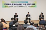 스페이스뉴스 스페이스뉴스 기자 | 윤건영 충청북도교육감과 송인헌 괴산군수는 6일 오전 10시 30분 괴산군립도서관 다목적홀에서 학부모 30여 명과 간담회를 가졌다. '지역인재, 지역에서 키운다'를 주제로 열린 이날 간담회에서는 괴산 맞춤형 교육과 진로 지원 확대를 통해 학생 유출을 줄이고 지역 정착 기반을 강화하는 방안과 함께, 사교육 의존 완화 및 공교육 경쟁력 강화 필요성에 대한 의견이 논의됐다. 충북교육청과 괴산군은 지난해 8월 지역소멸 위기 대응을 위해 괴산고등학교 입학정원을 132명에서 138명으로 확대했다. 괴산고등학교는 지역 유일의 고등학교로, 농산어촌 교육여건 개선을 위한 교육모델 학교로 운영되고 있으며 2024학년도 자율형공립고 2.0에 지정돼 지역 교육 경쟁력 강화의 거점 역할을 하고 있다. 한편 이날 간담회에서는 체인지앱을 활용한 지역 탐방 활성화 업무협약도 체결됐다. 체인지앱은 충북교육청이 2024년 9월 전국 최초로 개통한 GPS 기반 체험형 플랫폼으로, 학교 안과 밖을 연결하는 교육활동을 지원하며 도내 11개 시‧군과 협력해 조성한 둘레길‧유적지‧지역 명소 등