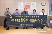 스페이스뉴스 스페이스뉴스 기자 | 대구 서구청은 대구시에서 실시한 2025년 민원행정 시민 만족도 조사에서 최우수, 종합평가에서 우수 기관에 선정됐다고 밝혔다. 대구시는 민원행정서비스 품질 향상을 위해 매년 ‘민원행정 시민 만족도 조사’를 실시하고 있다. 시민 만족도 조사는 지난해 10월부터 올해 9월까지 민원 서비스를 이용한 시민을 대상으로 민원 서비스 과정, 서비스 결과, 민원 응대 태도 및 전반적인 만족도에 대해 전화 설문의 형태로 이루어졌으며, 서구는 9개 구·군 중에서 가장 높은 종합만족도 96.8점을 얻어 ‘최우수’기관으로 선정되는 쾌거를 이루었다. 또한 서구는 대구시에서 매년 실시하고 있는 민원행정 종합평가에서도 3년 연속‘우수’기관으로 선정되는 영예를 안았다. 대구시의 민원행정 종합평가는 9개 구·군의 민원제도 운영 분야 14개 지표와 민원처리 현황 분야 8개 지표 등 총 22개 지표에 걸쳐 이루어진다. 서구는 안전한 근무환경 조성, 스마트 민원서비스 운영 지원, 고충민원 처리·관리 및 해결 노력 등 전반적인 분야에서 높은 평가를 받았다. 특히, 2일 이상 법