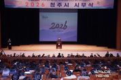 스페이스뉴스 스페이스뉴스 기자 | 청주시는 2일 청주예술의전당 대공연장에서 2026년 시무식을 개최하고 새해 시정 운영의 힘찬 출발을 알렸다. 이날 시무식에는 이범석 청주시장, 신병대 부시장을 비롯한 시 직원들과 산하기관 관계자 등 1천200여명이 참석해 새해 각오를 다졌다. 행사 전에는 직원 간 담소 시간이 마련됐으며, 오전 9시부터 국민의례를 시작으로 시장 신년사, 시립예술단 공연, 신년 인사가 순서대로 진행됐다. 이범석 시장은 신년사에서 “민선8기 청주시가 지금까지 시민과 이룬 성장과 변화는 뿌리 깊은 나무가 되어 어떤 비바람에도 흔들리지 않는 밑거름이 됐다”면서 “그 기반을 바탕으로 2026년을 청주의 더 큰 미래와 번영을 향해 나아가는 ‘개화공영(開花共榮)’의 해를 만들겠다”고 밝혔다. 이어진 시립예술단 공연에서 합창단은 ‘우리가 청주다’ 곡을 선보이며 새해를 여는 희망의 메시지를 전했고, 시장과 간부 공무원들은 사무실로 향하는 전 직원과 신년 인사를 나누며 2026년 시정 목표 달성을 위한 의지를 다졌다. 한편, 청주시는 2026년 화두로 개화공영을 선정했다. 민