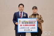 스페이스뉴스 스페이스뉴스 기자 | 부안군은 지난 22일 열린 제27회 노인의 날 기념행사 현장에서 (유)징코푸드시스템‧(유)피오레 문요환 대표가 고향사랑기부금 300만원을 기탁했다고 밝혔다. 이는 지난 7월 500만원 기부에 이은 두 번째 고액 기부로 올해 총 800만원의 고향사랑기부를 실천했다. 이번 기탁식은 이날 열린 노인의 날 기념행사 중 진행됐으며 문요환 대표를 대신해 징코푸드시스템 문세희 실장이 참석해 기탁의 뜻을 전했다. 부안을 대표하는 기업인인 문요환 대표는 지역에 대한 깊은 애정과 책임의식을 바탕으로 수년째 다양한 사회공헌 활동을 이어오고 있다. 권익현 부안군수는 “고향을 향한 깊은 애정이 꾸준한 실천으로 이어지는 모습에 진심으로 감사드린다”며 “기부는 단순한 나눔이 아니라 지역의 미래를 함께 만드는 동행이며, 문 대표님의 마음은 부안군 곳곳에서 가치 있게 쓰일 것”이라고 말했다. 한편 군은 전북 최초로 지정기부제를 도입해 기부자가 원하는 사업 분야를 직접 선택할 수 있도록 하고 있으며 복지와 환경을 아우르는 다양한 주민 체감형 사업을 통해 고향사랑기부제가 지역과 사람을