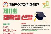 스페이스뉴스 스페이스뉴스 기자 | (재)연수큰재장학재단은 미래 지역사회를 이끌어 갈 우수 인재 발굴과 양성을 위해 제11회 장학생을 선발한다. 이번 장학생은 ▲복지, ▲특기(개인), ▲특기(단체), ▲연수꿈응원, ▲학업우수, ▲연수큰재(다년간) 등 총 6개 분야에서 지원자를 모집하며, 지원 규모는 약 1억 8천만 원에 달한다. 특히 올해는 장학생 지원 기준을 개선하고 추천권자를 조정하는 등 예년에 비해 보다 폭넓은 학생들에게 기회를 제공하는 방향으로 개편됐다. 선발 절차는 ▲공고 및 접수(9월 24일~10월 31일), ▲서류심사, ▲연수큰재(다년간) 면접 심사 및 선발 심의위원회 심의, ▲재단 이사회 최종 확정 순으로 진행된다. 선발 결과는 11월 말에 발표할 예정으로 자세한 사항은 연수구청 누리집 공고문을 통해 확인할 수 있다. 이재호 연수구청장은 “연수큰재장학재단은 미래 꿈나무들이 자신의 꿈을 마음껏 펼칠 수 있도록 지원하고 있다.”라며 “앞으로도 내실 있는 다양한 장학사업을 통해 교육 기회의 균등과 인재 양성에 최선을 다하겠다.”라고 말했다. [뉴스출처 : 인천시 연수구]