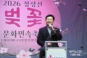 스페이스뉴스 스페이스뉴스 기자 | 용인특례시는 수지구 풍덕천2동의 대표 축제인 ‘정평천 벚꽃 문화민속축제’가 10일 저녁 풍덕천2동 행정복지센터 주차장과 정평천 일원에서 열렸다고 11일 밝혔다. 정평천은 수지구 신봉동에서 발원해 풍덕천동으로 흐르는 하천으로, 매년 봄이면 천변에 벚꽃이 만개해 시민들이 즐겨 찾는 명소다. 정평천 벚꽃 문화민속축제 추진위원회가 주최한 이번 행사에는 이상일 시장을 비롯해 주민 1000여 명이 참여했다. 행사는 식전공연을 시작으로 개회식, 축하공연, 점등식 등으로 이어졌으며, 시민들은 정평천 산책로를 따라 벚꽃 야경을 감상하며 봄의 정취를 즐겼다. 행사장에는 다양한 공연·체험 프로그램이 마련돼 축제장을 찾은 시민들에게 즐거움을 선사했다. 이상일 시장은 축사에서 “정평천을 따라 핀 아름다운 벚꽃이 봄의 정취를 깊게 한다”며 “정평천의 벚꽃은 저절로 생겨난 것이 아니라 풍덕천2동 주민들을 비롯한 많은 분들의 정성스레 가꿔왔기 때문에 아름답고 소중한 만큼 오늘 벚꽃과 공연을 감상하시면서 따뜻한 마음을 나누시기 바란다”고 말했다. 이 시장은 “올해로 10