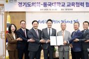 스페이스뉴스 스페이스뉴스 기자 | 경기도의회는 23일 오전 의장 접견실에서 동국대학교와 교육협력 및 학술교류를 위한 업무협약(MOU)을 체결했다. 이날 협약식에는 김진경 의장(더민주, 시흥3)과 고준호 의원(국민의힘·파주1), 김완규 의원(국민의힘·고양12), 이병숙 의원(더민주·수원12), 박호순 의정국장이 참석했다. 동국대학교에서는 윤재웅 총장, 김용현 교무부총장, 김승용 대학원장, 유한림 BMC(바이오메디캠퍼스) 행정처장 등이 함께 자리해 협약의 의의를 더했다. 양 기관은 이번 협약을 계기로 ▲의정 발전을 위한 정보 교류 ▲전문 인재 양성을 위한 교육·연구 지원 ▲도의원 및 의회 직원 대상 대학원 장학금 지원 등 의정 활동 역량 강화를 위한 체계적인 교육 협력에 나서기로 했다. 윤재웅 총장은 “대학의 교육·연구 역량을 공유함으로써 경기도 발전에 기여할 수 있게 되어 뜻깊다”며 “경기도의회와의 지속적인 협력을 통해 실효성 있는 교육 지원을 이어갈 수 있도록 최선을 다하겠다”라고 말했다. 김진경 의장은 “의회에 대한 도민의 기대는 점점 더 복잡해지고 다양화되고 있는 만큼 의회 구성원