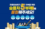 스페이스뉴스 스페이스뉴스 기자 | ■ 자원안보위기 극복을 위한 승용차 5부제(요일제)에 동참해주세요! - 1.6 월 - 2.7 화 - 3.8 수 - 4.9 목 - 5.0 금 ■ 승용차 5부제(요일제) 실천을 위한 국민행동 · 유연근무 활성화하기 · 출퇴근 시 카풀 활성화하기 · 대중교통 이용하기 · 가까운 거리는 걷거나 자전거 타기 [뉴스출처 : 기후에너지환경부]