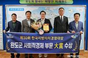 스페이스뉴스 스페이스뉴스 기자 | 완도군은 14일 서울 공군호텔에서 열린 '제30회 한국지방자치경영대상' 시상식에서 사회적 경제의 저변을 확대하고 주민 참여형 순환 경제 모델을 정착시킨 공로를 인정받아 ‘대상’을 수상했다. 한국지방자치경영대상은 한국공공자치연구원이 주관하고 행정안전부가 후원하는 권위 있는 상으로, 지방자치제 도입 30년을 맞아 각 지자체의 행정 혁신과 정책 성과를 종합적으로 평가해 우수 지자체를 선정·시상하고 있다. 올해는 10여 개 부문에서 전국 지자체들이 치열하게 경쟁했으며, 완도군은 사회적 경제 부문에서 최고의 영예를 안았다. 완도군은 마을 기업과 협력해 유용 패류 자원에 피해를 주는 불가사리를 수거해 비료로 재활용하고 농가에 공급하는 사업을 추진했다. 이 사업은 수산자원 보호와 농업 생산성을 높이는 동시에 지역 내 자원 순환 체계 확립 및 일자리 창출과 공동체 회복에 도움이 됐다. 특히 외부 지원 의존보다 주민이 생활 현장에서 사업을 발굴하고 실행함으로써 주민 참여형 사회문제 해결의 모범 사례로 인정받았다. 신우철 완도군수는 “이번 수상으로 완도군의