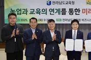 스페이스뉴스 스페이스뉴스 기자 | 전라남도교육청은 10월 14일 청사 5층 비지니스실에서 전라남도 농업기술원(원장 김행란)과 ‘농업과 교육의 연계를 통한 미래인재 육성 업무협약’을 체결했다. 이번 협약은 농업·농촌의 다양한 자원을 교육과 연계해 학생들이 체험 중심으로 배우고, 생태 감수성과 창의 역량을 키울 수 있도록 지원하기 위해 마련됐다. 이번 협약에 따라 양 기관은 ▲ 농촌교육농장과 치유 농장을 활용한 체험교육 확대 ▲ 늘봄학교 운영과 연계 가능한 프로그램 제공 ▲ 생태 기반 창의 교육, 진로, 창업 체험처 발굴 및 정보 제공 ▲ 지속가능한 농촌교육 모델 구축 등에 힘을 모으기로 했다. 양 기관은 협약 내용을 바탕으로, 각급 학교와 교육지원청이 쉽게 활용할 수 있는 프로그램을 발굴하고 현장 체험 중심 교육 자료를 개발할 예정이다. 또한 교원 연수와 교육공동체 협력 네트워크를 운영해 농업·농촌 자원을 효과적으로 교육 현장에 적용할 수 있도록 지원할 방침이다. 아울러, 농촌교육농장의 교육적 활용도를 높이고, 지역 농업과 연계한 미래형 교육 모델을 확산할 계획이다. 학생들은