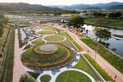 스페이스뉴스 스페이스뉴스 기자 | ‘가을 여행 명소’ 장성군에 조성된 황룡강 주제정원이 새로운 ‘핫 플레이스’로 부상 중이다. 장성군은 2023년부터 ‘지방정원 조성공사’를 통해 총 6개의 주제정원을 황룡강 일원에 만들고 있다. 전통적인 오방색에서 착안해 주제 색을 정하고 구간별로 △황룡정원(황) △홍담정원(적) △청백리정원(백) △푸른물빛정원(청) △검은숲정원(흑)을 조성 중이다. 여기에 지난 5월 ‘전라남도 정원 페스티벌’ 때 조성된 작가정원·초청정원·시민참여정원을 보존한 ‘참여정원’이 더해졌다. 가장 많은 발길이 모여드는 곳은 ‘황룡정원’이다. 옛 공설운동장 부지에 장성 잔디를 심고, 강변 쪽에는 음악 분수와 상설 무대를 설치했다. 무대를 바라보며 앉을 수 있도록 부채꼴 모양으로 계단을 만들고, 단차를 둬 공연을 관람하는 데 불편이 없도록 했다. 정원 외곽을 포근하게 감싸는 소나무와 은목서가 경관의 완성도를 높인다. 황룡강을 대표하는 정원으로, 매년 봄·가을 축제 주무대가 마련되는 장소다. ‘황룡정원’이 방문객들로 사랑받는 이유는