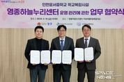 스페이스뉴스 스페이스뉴스 기자 | 영종구 출범 원년을 맞아 올해 새롭게 개관한 ‘영종하늘누리센터’의 안정적·체계적 운영을 위해 인천시 중구가 인천시 교육청, 운서중학교와 손을 맞잡았다. 김정헌 인천 중구청장과 도성훈 인천시 교육감, 김성오 운서중학교장은 10일 오후 영종하늘누리센터 하늘배움터에서 이러한 내용의 ‘인천운서중 학교복합시설(영종하늘누리센터)의 운영과 관리에 관한 업무 실시협약’에 서명했다. ‘영종하늘누리센터’는 인천 중구가 운서중학교 부지 내 일부를 무상으로 제공받아 하늘초롱길 69 일원에 지하 1층, 지상 4층 연면적 5,635㎡ 규모로 건립한 ‘학교복합시설’이다. 지난 2024년 6월 첫 삽을 떠 올해 1월 건립 공사를 모두 마쳤으며, 3월 준공식을 개최한 후 현재는 운영 본격화에 행정력을 집중하고 있다. 특히 다함께돌봄센터 7호점(거점형), 육아종합지원센터, 가족센터, 영종하늘누리 작은도서관이 지난 2월부터 입주해 다양한 복지·문화 서비스를 구민들에게 제공하고 있다. 이번 협약은 지난 2021년 영종하늘누리센터 건립을 위해 체결한 기본 업무협약의 내용을 한층 더 구체화