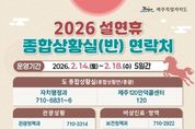 스페이스뉴스 스페이스뉴스 기자 | 제주특별자치도는 13일 진명기 행정부지사 주재로 ‘2026년 설연휴 종합대책 보고회’를 열고 ‘민생에 온기를, 안전에 안심을 더하는 설명절’을 주제로 분야별 세부 추진계획을 점검했다. 이날 보고회에는 정무부지사를 비롯해 안전건강실장, 특별자치행정국장, 행정시 부시장 등 상황반별 실국단장 20여 명을 포함한 130여명의 간부공무원이 참석했다. 제주도는 14일부터 18일까지 특별자치행정국장을 총괄로, 총 7개반 1,491명을 투입해 종합상황실을 운영한다. 도 7개반 366명, 제주시 7개반 625명, 서귀포시 9개반 500명이 참여하며, 하루 평균 298명이 현장에서 비상근무를 선다. 제주 120 만덕콜센터와 당직 근무자가 도민과 관광객 불편신고를 접수한다. 지난 10일 수립해 추진 중인 설연휴 종합대책은 ▲민생경제 안정 ▲도민안전 확보 ▲교통․관광 편의 ▲도민불편 해소 ▲나눔실천 등 5개 분야로 구성됐다. 물가안정 및 소비촉진을 위해 탐나는전 적립률 상향과 전통시장 온누리상품권 환급행사 등 소비지원 대책을 추진한다. 탐나는전 적립률을 2월 한 달간 20