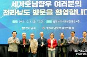 스페이스뉴스 스페이스뉴스 기자 | 세계 각국에 거주하는 호남 향우들이 글로벌 고향사랑 실천에 앞장서고 있다. 세계호남향우회 총연합회(회장 이기자)는 3일 ‘2025 세계 호남인의 날’을 기념해 전 세계 회원 250여 명과 함께 전남을 방문, 고향사랑기부금 3천만 원을 전달했다. 이번 기부는 이기자 총연합회장, 김원봉 제2대 회장, 이동수 3대 회장, 김영윤 4대 회장, 김점배 아프리카중동한인회 총연합회장, 손재민 중국호남향우회총연합회 4·5대 회장, 김용덕 동경호남향우회 11대 회장 등 주요 임원들의 참여로 이뤄졌다. 이기자 총연합회장은 “고향에 대한 그리움과 깊은 애정을 담아 기부금을 마련했다”며 “고향 발전에 보탬이 돼 기쁘고, 언제나 전남 발전을 응원한다”고 말했다. 김영록 전남도지사는 “향우들께서 해외에서도 호남인의 긍지를 지키면서 고향 발전을 위해 지속해서 힘을 보태주고, 전남에 어려움이 있을 때마다 앞장서준 것에 깊은 감사의 뜻을 전한다”며 “고향을 향한 각별한 관심과 성원에 보답하도록 최선을 다하겠다”고 말했다. 세계호남향우회총연합회는 2013년 창설돼 27개 나라 75개