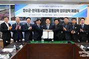 스페이스뉴스 스페이스뉴스 기자 | 장수군은 12일 군청 회의실에서 장수군의회, 한국동서발전(주)과 장수군 양수 발전 사업 성공적 유치를 위한 공동협력 업무협약을 체결했다. 이날 협약식에는 최훈식 장수군수, 최한주 군의회 의장을 비롯해 권명호 한국동서발전 사장 등 기관 관계자 20여 명이 참석했다. 협약식에서는 장수양수발전소 유치를 위한 공동 협력관계를 구축하고 에너지파크 조성 및 관광자원화 등 6가지 사항에 대해 협력할 것을 약속했다. 장수양수발전소는 기존 저수지를 활용하는 덕산 용림제부터 번암 동화저수지 일원을 사업예상지로 검토중이며, 500㎿급의 발전 용량으로 총 사업비 약 1조 5,000억 원이 투자되어 2027년 12월 최종 선정되면 2038년까지 12년 간 공사가 이뤄질 예정이다. 양수발전은 남는 전력으로 하부저수지의 물을 상부저수지로 끌어올린 뒤 물을 떨어뜨려 전기를 얻는 방식으로 발전 시 탄소가 발생하지 않아 기후위기 시대에 적합한 전원이다. 장수군은 양수발전소 건설이 지역과 함께 상생하는 100년 향토기업의 유치로 이어져 약 1,100억 원의 지방세수 및 약 500억 원