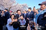 스페이스뉴스 스페이스뉴스 기자 | 여의도 순복음교회에서 부활절 연합 예배를 마친 이재명 대통령과 김혜경 여사는 여의도 윤중로에 나가 벚꽃놀이를 즐기러 온 시민들과 깜짝 소통에 나섰다. 시민들은 “대통령님, 여사님 파이팅”, “반갑습니다”, “감사합니다”, “여기도 봐주세요!”등을 외치며 이 대통령 부부를 반갑게 맞이했다. 이 대통령 부부는 사진 촬영을 요청하는 시민들과 셀카를 찍으며 인사를 나눴고, 파나마와 중국에서 온 외국인들과도 셀카를 찍었다. 이어 자신을 독립유공자의 딸이라고 밝힌 할머니와 그 손녀와도 함께 사진을 찍기도 했다. 이 대통령은 혼자 오신 어르신께 “어디서 오셨느냐?”고 친근하게 말을 건네고, 유모차를 탄 아이나 어린이와 눈높이를 맞추기 위해 무릎을 굽혀 셀카를 찍는 등 특유의 친근함으로 시민들과 눈높이 소통에 나섰다. 어린 아이를 안고 있는 젊은 부부나 신혼부부들의 사진 요청을 유독 반긴 이 대통령은 "신혼부부가 정말 중요하다"고 크게 웃으며 강조했다. 한편, 엄마와 함께 온 한 어린이가 “대통령 할아버지 사진 찍어주세요!” 라고 외치자 대통령실의 한 참모는 “대통령