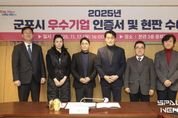 스페이스뉴스 스페이스뉴스 기자 | 군포시는 17일 시청 3층 중회의실에서 ‘2025년 군포시 우수기업 인증서 및 현판 수여식’을 열고 5개 우수기업에 인증서와 현판을 수여했다. ‘우수기업 선정사업’은 2022년부터 시작하여 올해 4번째로 추진하는 사업으로 일자리 창출, 세수 증대 등 지역경제 활성화에 기여한 기업을 선정하여 인센티브를 부여하는 사업이다. 선정된 우수기업은 인증기간(3년) 동안 군포시 중소기업 육성자금 지원 시 추가 이차보전, 군포시 관내 공영주차장 이용 시 주차요금 감면, 협약병원 의료비 지원 등의 인센티브가 부여된다. 하은호 군포시장은 “어려운 경제 상황 속 관내 우수한 기업에 활력을 불어넣기 위한 우수기업 선정사업에 관심 가져주심에 감사드리며, 앞으로도 기업지원 사업을 다각화하여 기업 경영하기 좋은 환경을 만들겠다”고 말했다. 올해 선정된 군포시 우수기업은 △(주)아이씨에이치 △㈜지비티코리아 △주식회사예선테크 △듀라텍 주식회사 △㈜트리플닷 으로 총 5개 기업이다. [뉴스출처 : 경기도 군포시]