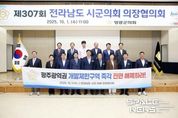 스페이스뉴스 스페이스뉴스 기자 | 전라남도 시군 의회 의장협의회는 지난 10월 1일 영광군의회에서 개최된 제307회 정례회의에서“광주광역권 개발제한구역 전면 해제 촉구 건의안”을 만장일치로 채택했다. 이번 건의문은 장성군의회 심민섭 의장이 발의한 것으로 광주광역권을 둘러싼 4개 시 군(장성, 담양, 화순, 나주)에 수십년간 과도한 개발제한구역을 지정하면서 수도권에는 과밀억제를 명분으로 개발제한구역 제도를 더욱 엄격히 적용해야 하나, 오히려 수도권을 중심으로 해제를 해주면서도 비수도권인 광주광역권에는 여전히 경직되고 일률적인 규제를 강요하는 것은 명백한 지역 역차별이자 지방시대 국가균형발전 정책에도 역행하는 조치라며 정부에 전면 해제를 강력히 요구했다. 건의문에는 ▲ 광주광역권 개발제한구역 전면 해제 ▲ 지역발전에 대한 사항을 지방정부가 결정할 수 있도록 모든 권한을 자치단체에 이양할 것을 촉구하는 내용을 담고 있으며, 건의문을 발의한 심민섭 의장은“광주광역권 개발제한구역은 시대적 역할을 다한 만큼, 지역간 균형발전을 실현하고 나아가 국가 전체의 지속가능한 발전을 도모하기 위해서 개발제한구역 전면 해제가 반드시 필요하다.”고