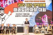 스페이스뉴스 스페이스뉴스 기자 | 남양주시의회는 16일 남양주체육문화센터 실내체육관에서 열린 ‘다산 정약용배 태권도 한마당대회’에 참석해 참가선수들을 격려했다. 남양주시체육회가 주최하고 남양주시태권도협회가 주관한 이번 대회는 시민 건강 증진과 생활체육 활성화를 위해 마련됐으며, 1500여명의 참가선수들이 품새, 겨루기, 격파, 태권체조, 스피드발차기 등 다양한 종목을 통해 그간 준비한 기량을 마음껏 펼치며 실력을 겨뤘다. 이날 개회식은 조성대 남양주시의회 의장을 비롯해 시의원, 주광덕 시장, 국회의원, 도의원, 강신관 남양주시태권도협회장 등 주요 인사들이 참석했으며, △개회선언 △내빈소개 △표창 및 감사패 수여 △대회사 △환영사 및 축사 △태권도 시범공연 △기념촬영 순으로 진행됐다. 조성대 의장은 축사에서 “실학의 고장 남양주에서 정약용 선생의 배움과 실천 정신이 깃든 이름으로 열린 이번 대회는 그 의미가 더욱 특별하며, 태권도야말로 예의와 질서, 존중의 정신을 배우는 훌륭한 교육”이라고 강조했다. 이어 “상대에 대한 배려와 정정당당한 승부뿐만 아니라 진정한 승리는 이기는 것보다 자신을 이겨내는데
