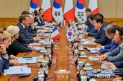 스페이스뉴스 스페이스뉴스 기자 | 이재명 대통령은 4월 3일 오전 청와대에서 에마뉘엘 마크롱(Emmanuel Macron)' 대통령과 정상회담을 갖고, 올해 수교 140주년을 맞아 ‘글로벌 전략적 동반자’로 격상된 양국 관계 발전 방안과 주요 지역·국제 정세 등에 대해 심도 있게 논의했다. 이 대통령은 올해 한-프랑스 수교 140주년을 계기로 마크롱 대통령이 취임 후 처음 방한한 것을 환영하고, 우리 신정부 출범 후 국빈으로 우리 나라를 찾은 첫 유럽 정상인 만큼 의미가 더욱 각별하다 했다. 이에 마크롱 대통령은 프랑스 대통령으로서 11년 만에 방한하게 되어 뜻깊다고 전했다. 양 정상은 최근 중동 전쟁과 그로 인한 영향에 대해 심도 있는 논의를 갖고, 중동의 안정과 평화가 조속히 회복되어야 한다는 데 의견을 같이 했다. 아울러, 국가 경제 및 국민의 삶에 미칠 충격을 최소화하기 위한 거시경제 정책 대응 경험과 전략을 공유하는 한편, 원자력, 해상풍력 분야 협력 확대를 통한 에너지안보 강화 및 호르무즈 해협 내 안전한 해상수송로 확보를 위한 협력 의지를 확인했다. 이어 양 정상은 2004년 '21세기 포괄적 동반
