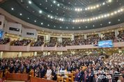 스페이스뉴스 스페이스뉴스 기자 | 이재명 대통령과 김혜경 여사는 오늘 오후 여의도순복음교회에서 열린 ‘2026 한국교회 부활절 연합예배’에 참석해 부활의 의미를 되새기며 함께 예배를 드렸다. 이번 부활절 연합예배는 총 73개 교단, 7천여 명이 함께 참여한 뜻깊은 행사이다. '부활! 평화! 사랑'이라는 주제 아래, ‘생명의 부활, 한반도 평화’(요한복음 20장 19-23절)를 표어로 삼아 열렸다. 예배는 2026 부활절연합예배준비위원회 대회장인 이영훈 여의도순복음교회 담임목사의 대회사로 시작해 ▲대표기도 ▲성경봉독 ▲설교 ▲특별기도 ▲통성기도 ▲축도 순으로 진행됐다. 이재명 대통령은 축사를 통해 “해마다 개최되는 부활절 연합예배는 우리 사회에 사랑과 희망의 메시지를 전해 왔다”면서 “늘 나라와 국민을 위해 기도해 주시는 한국교회와 성도 여러분께 국민을 대표해서 감사드린다”고 전했다. 이어 “세계를 지탱해오던 평화와 번영의 질서가 약화되고, 연대와 화합이 아닌 갈등과 다툼이 심화되고 있다”면서 “이럴 때일수록 부활의 의미와 함께 오늘의 주제인 평화, 사랑의 의미를 다시 깊이 되새겨야 할 것”이라고 언