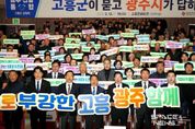 스페이스뉴스 스페이스뉴스 기자 | 광주광역시는 12일 전남 고흥문화회관에서 ‘광주전남 행정통합 고흥군 상생토크’를 열고, 고흥군 발전 전략과 통합 이후 변화상에 대해 고흥군민들과 소통했다. 이번 행사는 여섯번째 열린 상생토크로, 통합 이후 고흥의 우주·해양·농어촌 자원을 활용해 광주·전남 균형발전을 이루기 위해 마련했다. 이날 행사에는 강기정 광주시장을 비롯해 공영민 고흥군수, 류제동 고흥군의회 의장, 고흥군민 등 600여 명이 참석해 광주전남 통합에 대한 높은 관심을 보였다. 강기정 시장은 먼저 광주전남 통합 추진상황과 향후 일정, 통합에 대한 정부 특전(인센티브) 등을 설명하며 통합 의지를 밝혔다. 강 시장은 이어 고흥군과 관련된 특별법안 특례조항으로 ▲광역생활권 지정과 교통복지 ▲항공우주 산업 육성 ▲문화관광 기반시설(인프라) 구축 지원 등을 소개했다. 특히 고흥을 비롯한 위기산업지역인 전남 동부권에 재정을 우선적으로 투입해 일자리를 지키고 광주·전남 균형발전을 이끌겠다는 구상을 발표했다. 이날 상생토크에서 공영민 고흥군수는 ▲안정적인 농어촌 재정 지원 ▲우주항공산업