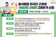 스페이스뉴스 스페이스뉴스 기자 | 음식점업 외국인 근로자 '26년도 2회차 고용허가 신청 ■ 신청기간: 2026.4.20.(월)~5.6.(수) ■ 신청 요건 · 업종 한식 음식점업(한국표준산업분류 상 5611), 외국식 음식점업(5612) *고용보험 시스템에 등록된 업종 기준(실제 영업을 영위하는지 여부 등은 '사업자등록증' 또는 '영업신고증'으로 증빙) *기관구내식, 출장이동식, 기타간이, 주점, 비알코올 음료점은 미허용 · 업력 고용허가서 신청일 기준으로 한식·외국식 음식점업으로 연속하여 5년 이상 영업 유지(휴업 기간 포함) *부가가치세 과세표준증명원상 과세기간 또는 사업자등록증상 '개업년·월·일'로 확인 · 고용인원 내국인 근로자 1인 이상 5인 미만 사업장은 1명, 5인 이상 사업장은 2명까지 가능 *내국인근로자(피보험자) 수는 고용부에서 고용보험시스템 전산 확인 · 직무 주방보조원(한국표준직업분류 상 95220) 및 음식 서비스 종사원(45311) *현장 여건에 맞게 직무범위 탄력적 운영 가능 · 문의 - 고용노동부 상담센터 ☎1350 · 신청 - 사