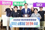 스페이스뉴스 스페이스뉴스 기자 | 함양군은 지난 13일 서울 여의도 국회의원회관 대회의실에서 열린 ‘2025 제9회 대한민국 청년의 날 기념식’에서‘청년친화헌정대상 우수 기초자치단체부문 소통대상’을 수상하며, 2년 연속 수상의 영예를 안았다. 올해 8회에 이르고 있는 ‘청년친화헌정대상’은 국회가 후원하고 (사)청년과미래가 주관하여 정책, 입법, 소통 분야의 청년 친화도를 평가하는 청년친화지수를 기준으로 심사하며, 청년 친화적 환경조성에 기여한 기관들의 업적과 공로를 표창하기 위해 마련됐다. 함양군은 청년정책네트워크 운영, 청년의 날 행사 및 청춘마켓, 청년 주거‧창업 지원사업 등 청년이 체감할 수 있는 다양한 정책을 지속 추진하며 청년들과의 소통과 협력을 강화해 온 점에서 높은 평가를 받았다. 특히 함양군은 작년부터 청년정책네트워크와 함께 청년들이 직접 기획하는 청년의 날 행사를 진행하고 있으며, 다가오는 20일 상림공원(프린지무대)에서 개최되는 ‘2025년 함양군 청년의 날 행사’에서는 군수와의 소통시간 등 청년들과 가까이서 소통하는 시간도 가질 예정이다. 진병영 함양군수는 “이번 수상은 군과 청